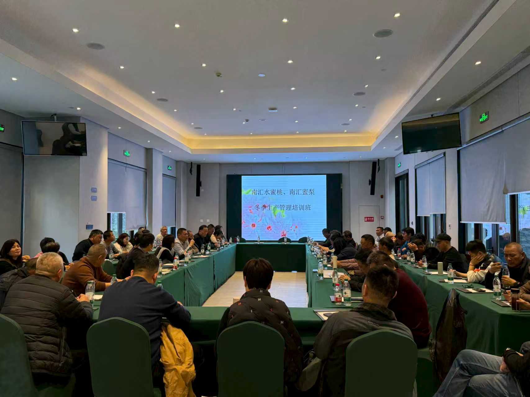 下午的座谈交流中,陈所长分享了奉化水蜜桃产业的“成长史”:如何从分散种植到规模化经营,如何通过品种优化与标准统一打响品牌。考察团代表也交流分享了抓好水蜜桃病虫害防治、夏季秋季修剪生产管理对提升品质、产量至关重要。赵宝明和熊帅还针对南汇水蜜桃、南汇蜜梨的冬季生产管理要点进行系统培训。