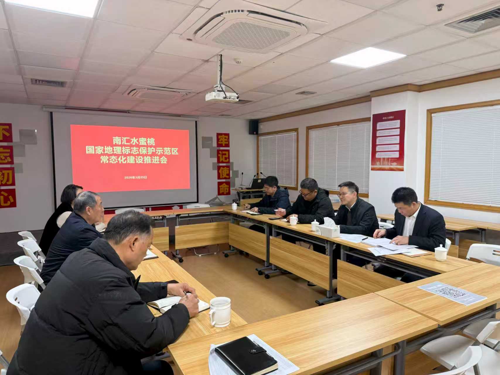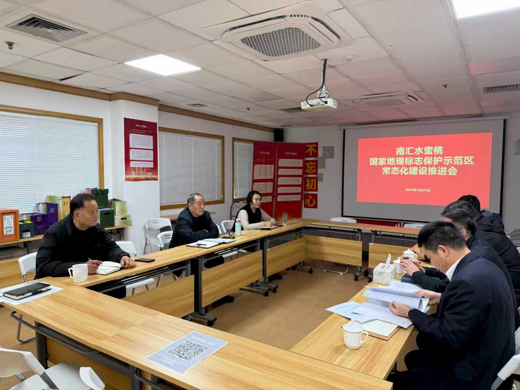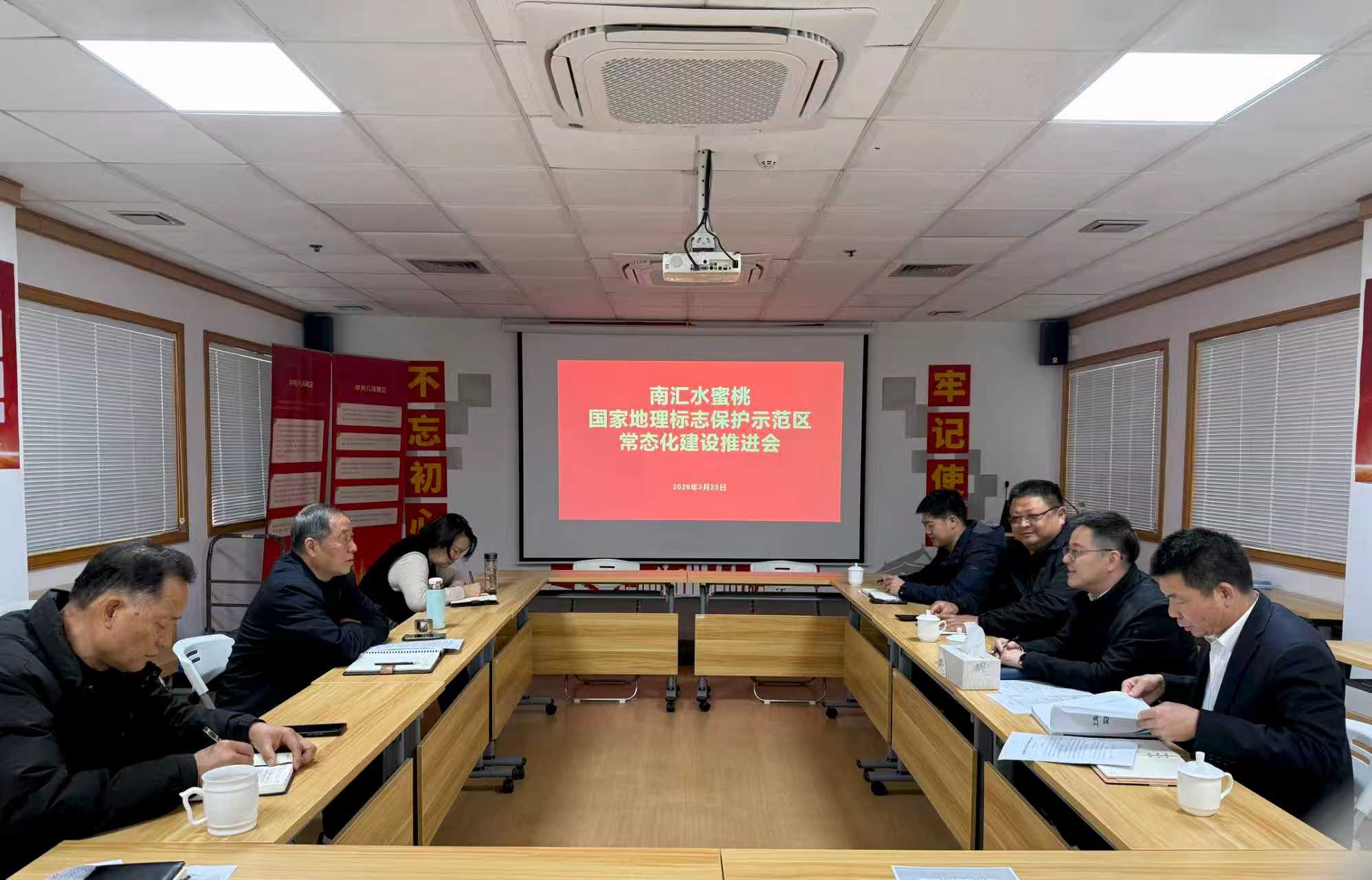 3月25日下午,南汇水蜜桃国家地理标志保护示范区常态化建设推进会在农协会会议室召开。市、区知识产权局保护处相关同志、农协会有关人员参加会议。会议由农协会秘书长厉建飞主持。