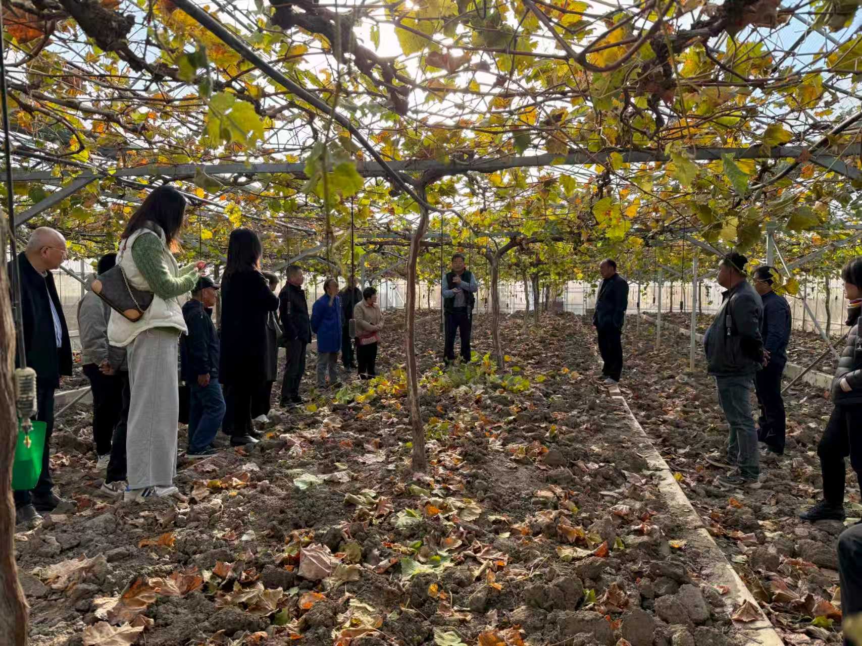 活动首站,考察团在马陆葡萄研究所负责人单涛及其技术团队的带领下,深入参观了马陆葡萄主题公园的生产基地。时值冬季,正是葡萄冬季生产管理关键阶段、为明年产出优质果品、丰产打下坚实基础的关键时期。单涛及技术人员在现场详细演示并讲解了冬季清园、修剪整形、肥水管理、土地深翻、病虫害防控等一系列标准化生产管理措施。考察团成员们边看边问,就实际操作中的技术难点与细节,与葡萄专家进行了详细而深入的互动交流,对马陆葡萄在精细化、标准化管理方面取得的成效有了直观而深刻的认识。