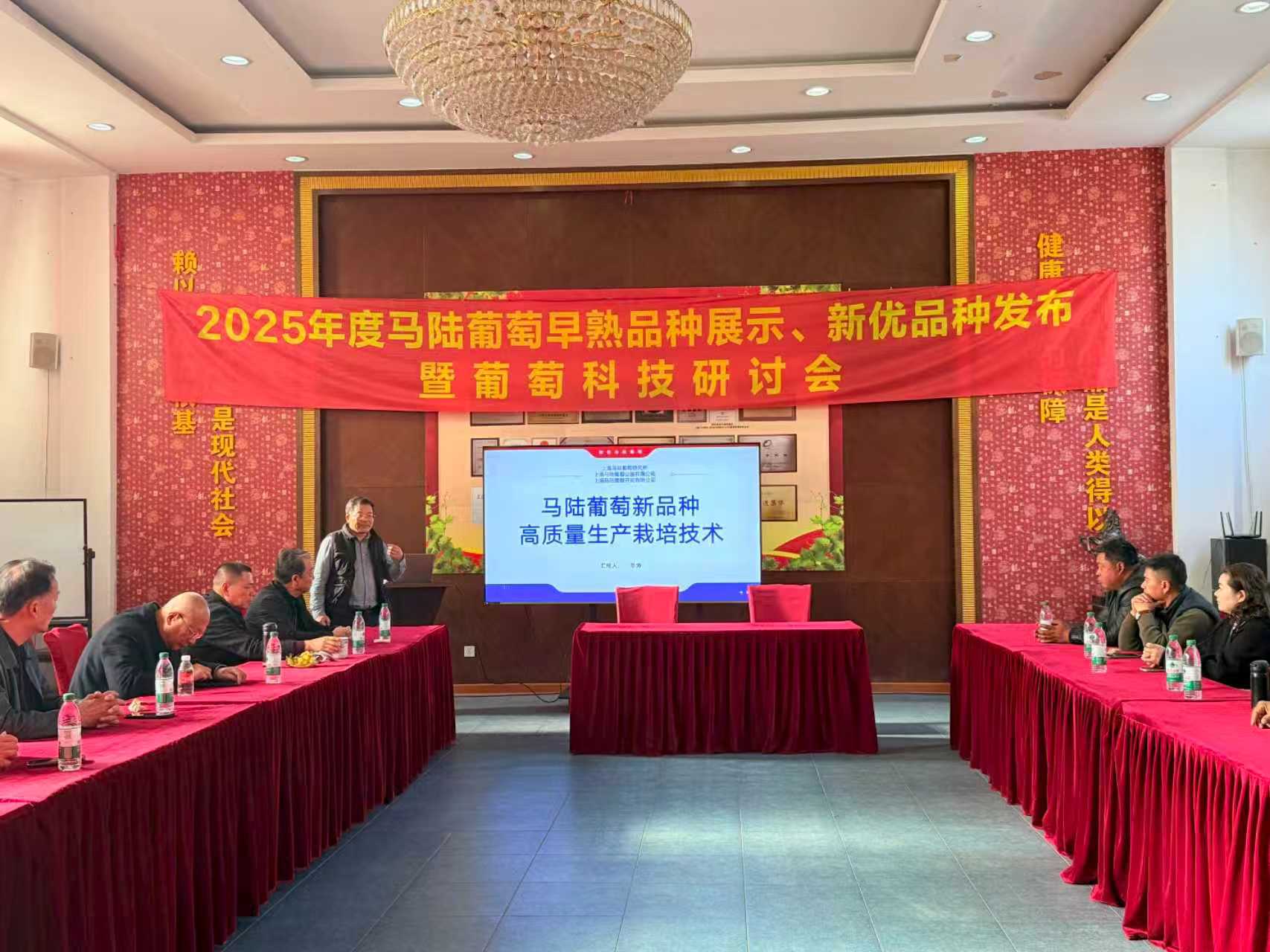 随后进行的生产管理专题培训交流会上,单涛以“马陆葡萄高质量栽培技术”为主题,进行了系统分享。他从马陆葡萄研究所及主题公园的单位概况与发展历程切入,重点介绍了马陆自主选育的系列优质葡萄新品种及其特性,详细阐述了垅式种植、新型整形等一体的高效栽培技术体系,全面展示了其在绿色植保、病虫害生态综合防控方面的具体实践。尤为引人关注的是,单涛还深入分享了马陆葡萄在品牌打造、分级销售、观光休闲融合以及市场营销策略方面的成功经验,为浦东葡萄产业的发展提供了宝贵的思路借鉴。