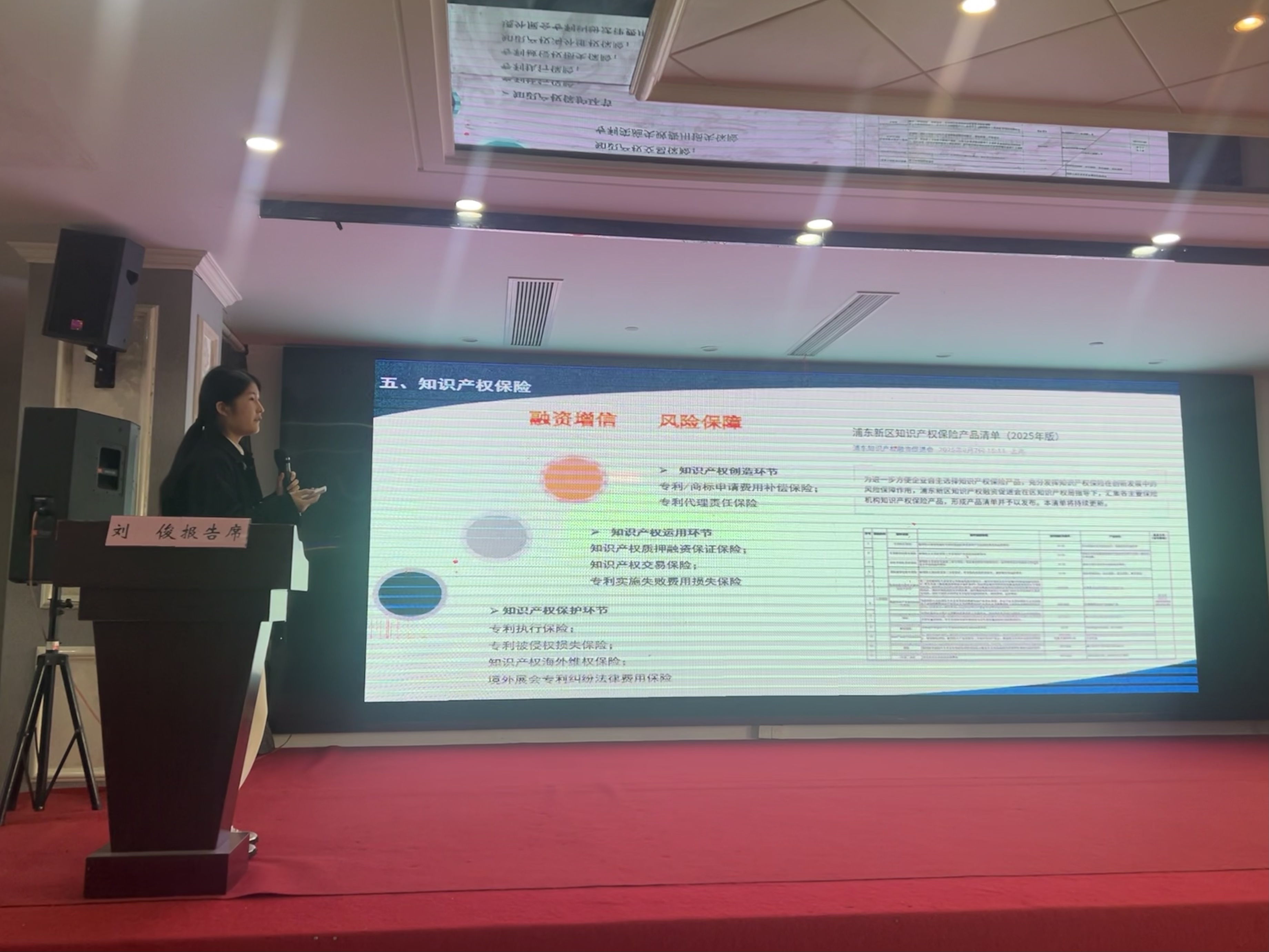 会员大会第二项议程邀请上海农商行浦东分行副总经理董稳婷作知识产权质押融资业务宣讲,重点讲解了企业如何借助知识产权实现融资,从而推动自身创新发展。知识产权融资方式丰富多样,涵盖质押融资、作价入股、证券化、融资租赁及保险等形式,形成了多元化的融资格局;浦东新区知识产权局知识产权发展促进处的刘俊就知识产权融资及资助政策进行了介绍,主要讲解了对通过质押知识产权获得金融机构贷款的中小微企业,在完成还本付息后可获得贴息资助的相关政策细则、申请流程等内容。