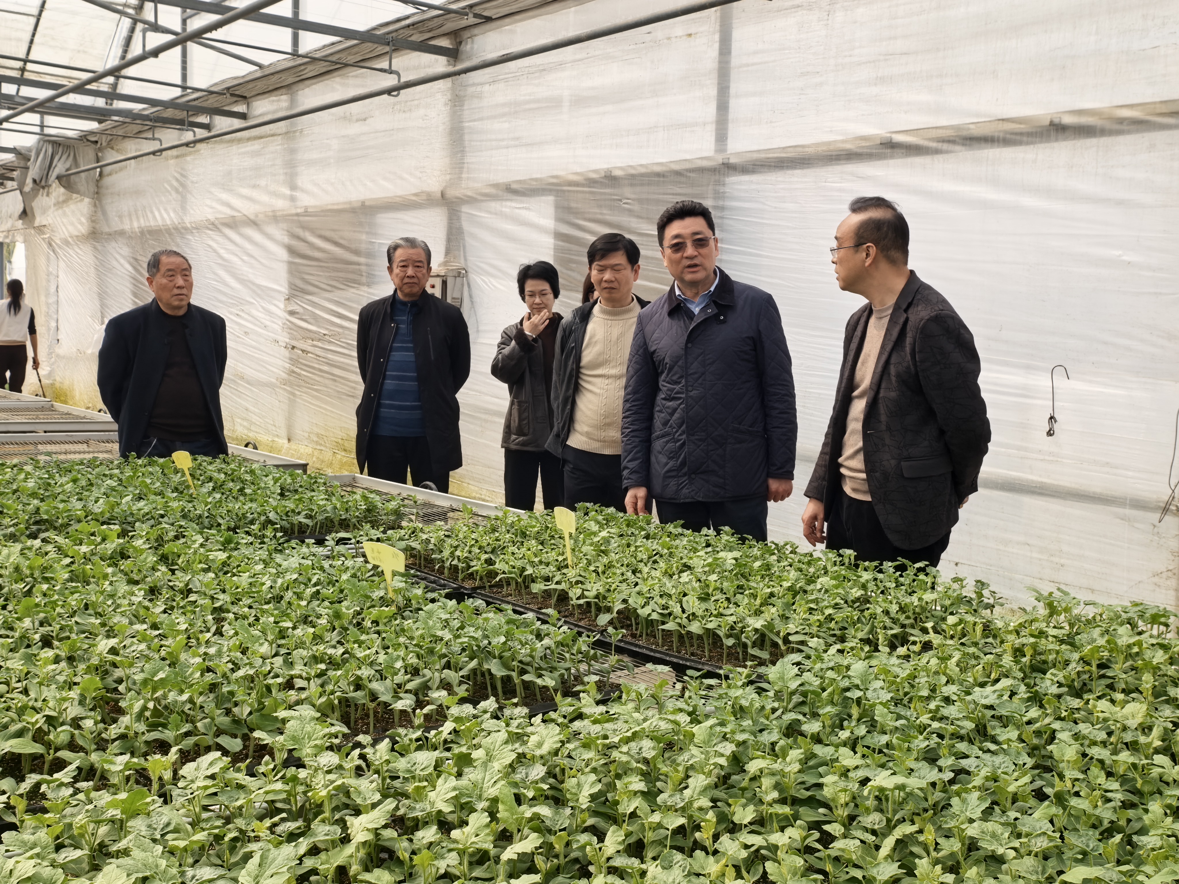 3月19日下午,区农业农村委主任苏锦山带领农业处、农技中心、农协会等相关人员分别到上海孰美农业投资有限公司、上海婷晟种苗有限公司调研西瓜育苗生产工作,现场察看西瓜育苗情况,听取公司生产经营情况。苏主任指出,浦东“十五五”规划稻瓜轮茬西瓜种植面积10000亩,落实到镇、村,要求育苗工厂不能单方面追求产量,务必把品质放在第一位,要研究从卖种苗到产品、技术指导、标准化生产,带动整个产业链,为农民增收、为乡村振兴多作贡献。